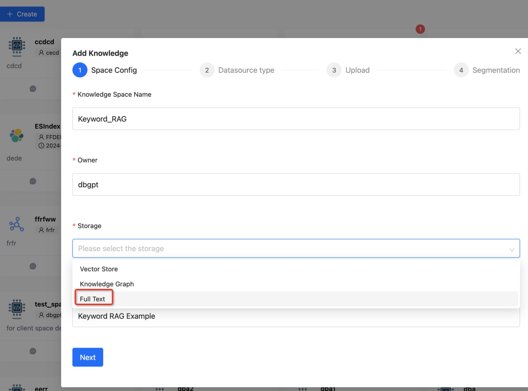 ChatKnowledge支持通过构建全文索引方式进行关键词召回