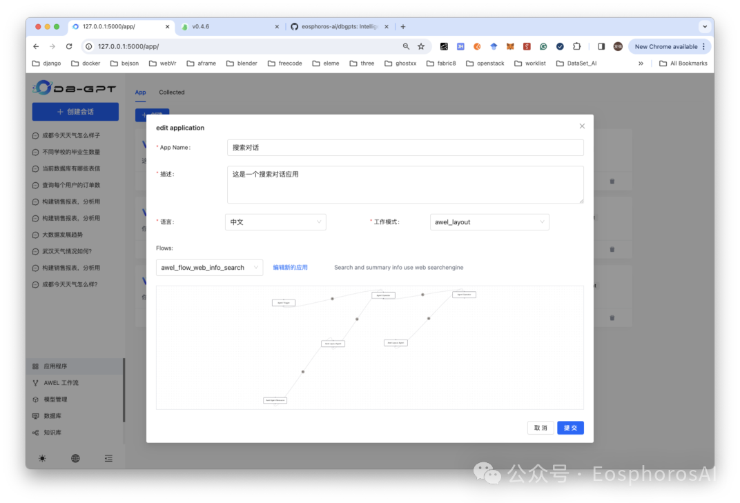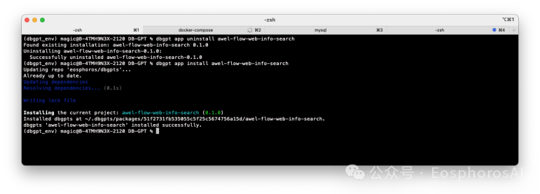 这个工作流。执行命令 dbgpt app install awel-flow-web-info-search