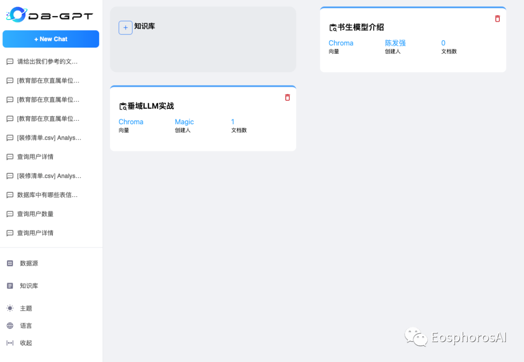 目前 DB-GPT 私域知识问答能力已支持了 txt、pdf、markdown、html、doc、ppt、csv 等多种文档类型,并在知识库管理上提供了知识空间 ( Knowledge Space ) ,只需要在使用时将文档、数据上传到知识空间做向量化,即可以愉快地使用啦。