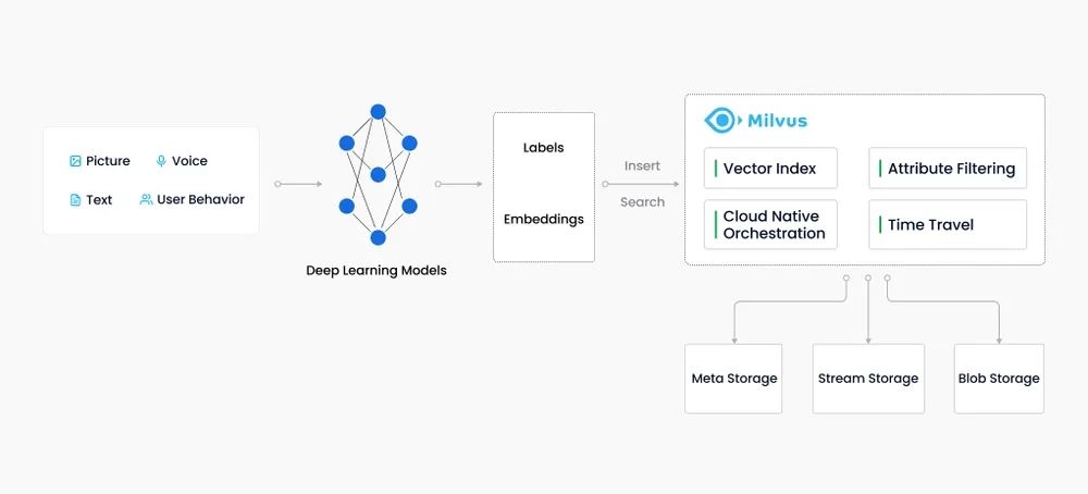 Milvus 是一款向量数据库,于 2019 年开源,可用于存储、索引和管理由深度神经网络学习与其他机器学习模型生成的海量向量。
