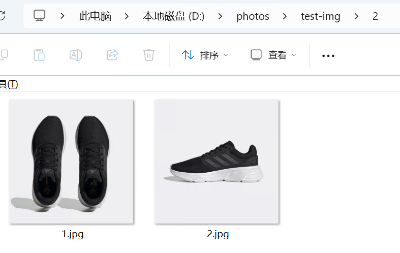 我在某东上手动准备了十双鞋子的照片,每双鞋子的第一张都是俯瞰图,第二张是侧面图且方向一致: