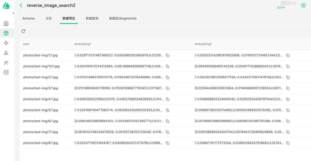 先创建一个有一个图片路径,且有两个向量的表: