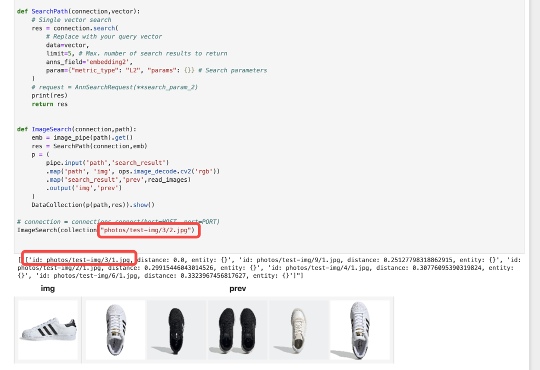 可以在结果中看到,我是用的第三双鞋的侧面照片进行搜索的,结果中第一个就是第三双鞋,说明单向量的准确度已经很高了,但是最后一个图片的相似度也很高,排名却是在最后,说明可能还会有漏网之鱼。