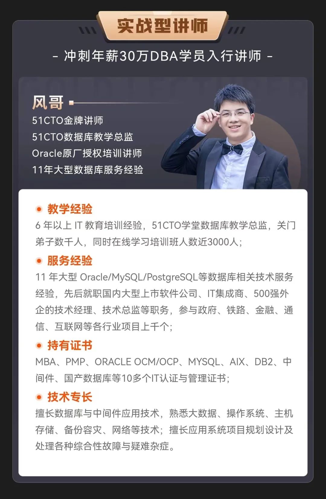 数据库种类比较多,学习一般选Oracle或者MySQL;不过随着信创项目的推进,PostgreSQL也开始进入行业视野,现在只要把Oracle、MySQL、PostgreSQL掌握了之后就能非常好的去冲刺全部的高薪DBA岗位(即冲刺平均年薪30w+的数据库岗位);后续提升还能再进行技术的扩展,比如继续学习开源数据库、分布式数据库、大数据技术、综合管理能力等,实现两专多通,向数据库架构师方向发展。