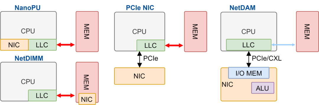 简单粗暴的减法有两种,一种是NanoPU,另一种是NetDIMM, 还有一种是更高级的加一减二的玩法,比如NetDAM