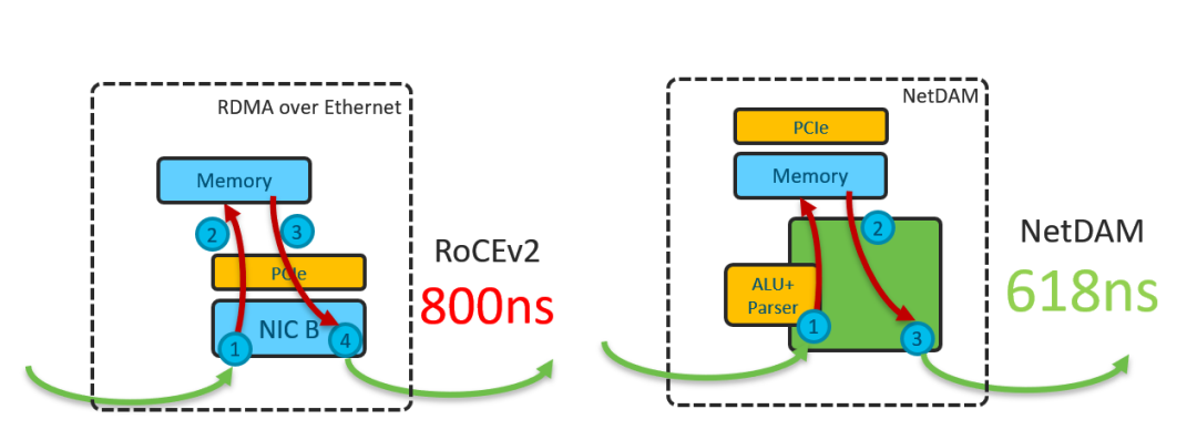 内存前置到网络侧,一方面bypass了PCIe的延迟,所以我们比RoCE快了20%