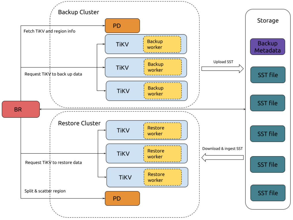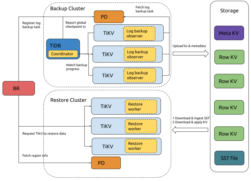 物理备份分为全量备份和增量备份。全量备份又称为“快照备份”,即通过快照保证备份出的数据一致;增量备份在当前的 TiDB 版本中又称为“日志备份”,即每次备份最近一个时间范围的 kv 变更日志。
