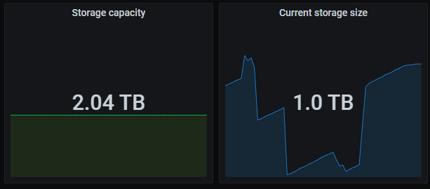 ● Grafana 集群总容量是所有存储节点部署盘的累计大小