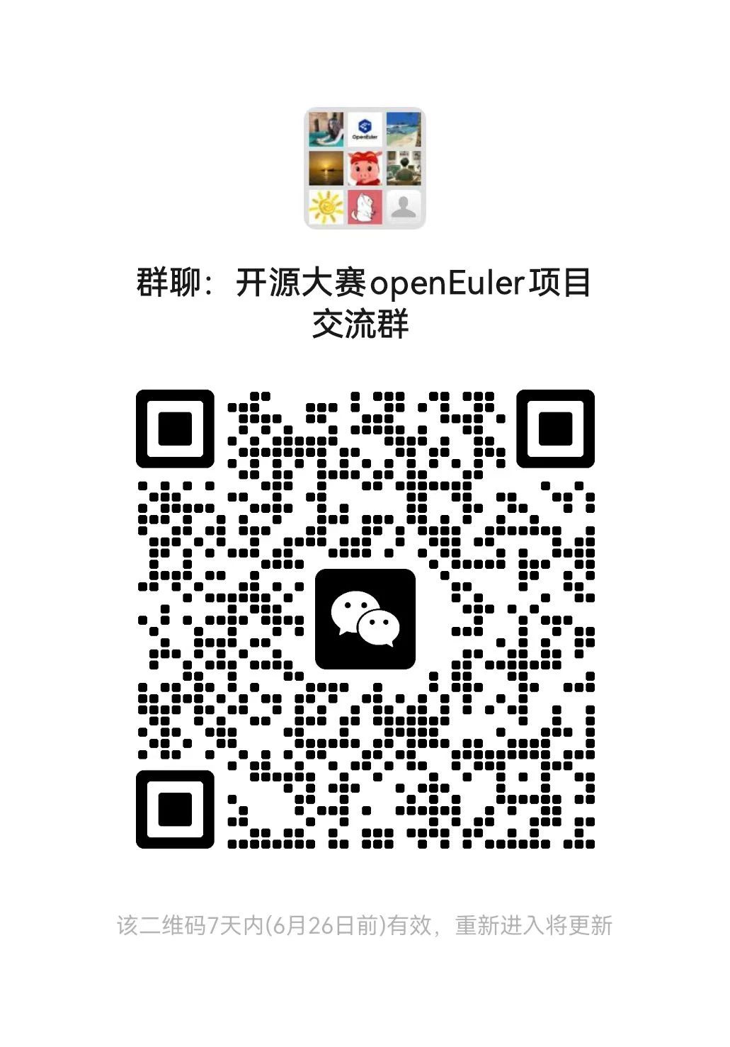 感兴趣的同学可进微信交流群,赛事培训相关讯息将在群内通知,若二维码过期可添加openEuler小助手(openeuler123)