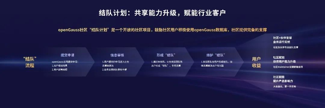 openGauss社区一直秉承着共建、共享、共治的发展理念,为了进一步升级社区共享能力,帮助伙伴、客户和社区之间充分有效连接, openGauss社区“结队”计划正式发布——通过“结队”计划,openGauss将被更多的客户应用到核心业务场景中去,发挥更大的价值;而客户将拥有更先进的数据库核心技术,更好地提升自身能力;伙伴们也将共享更多社区资源,打开更多行业机会点。结队计划正式发布