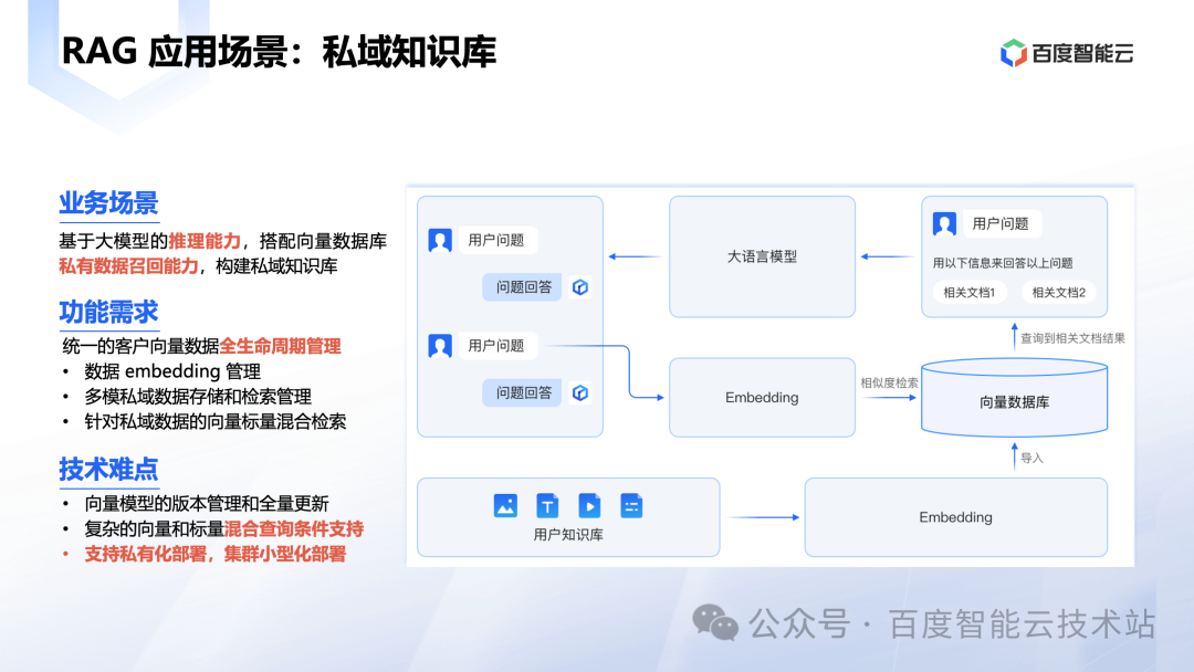 前面讲到 RAG 核心是解决大模型最新知识的补充问题,所以 RAG 里面最典型的场景就是私域知识库。