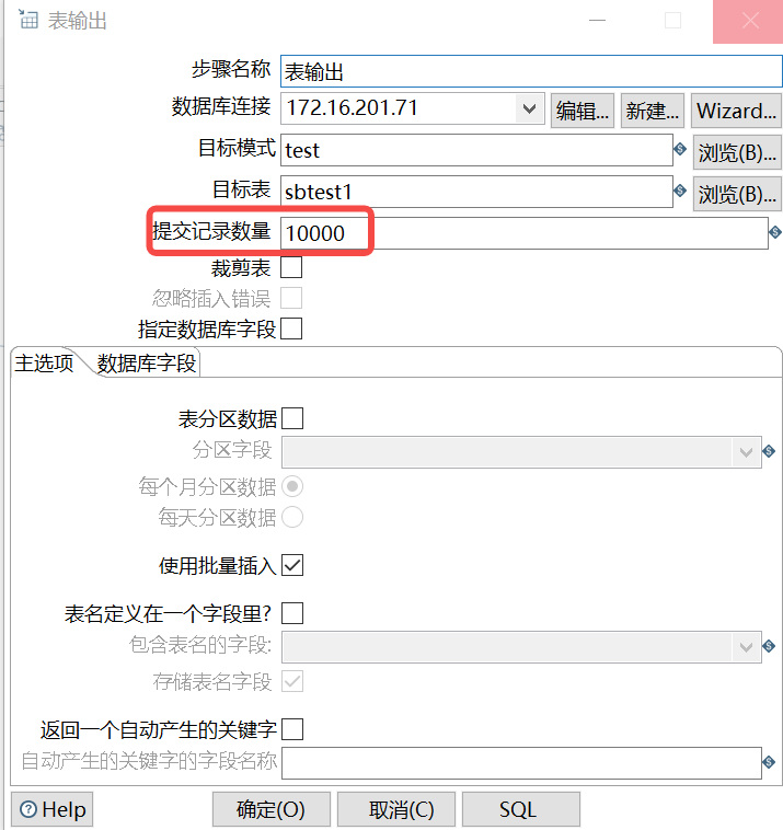 既然方案是停业务同步到一个临时 schema,理论上都是 insert 没有冲突,那么没必要使用“插入/更新”组件,这个组件的性能非常低,我们改为“表输出”组件。