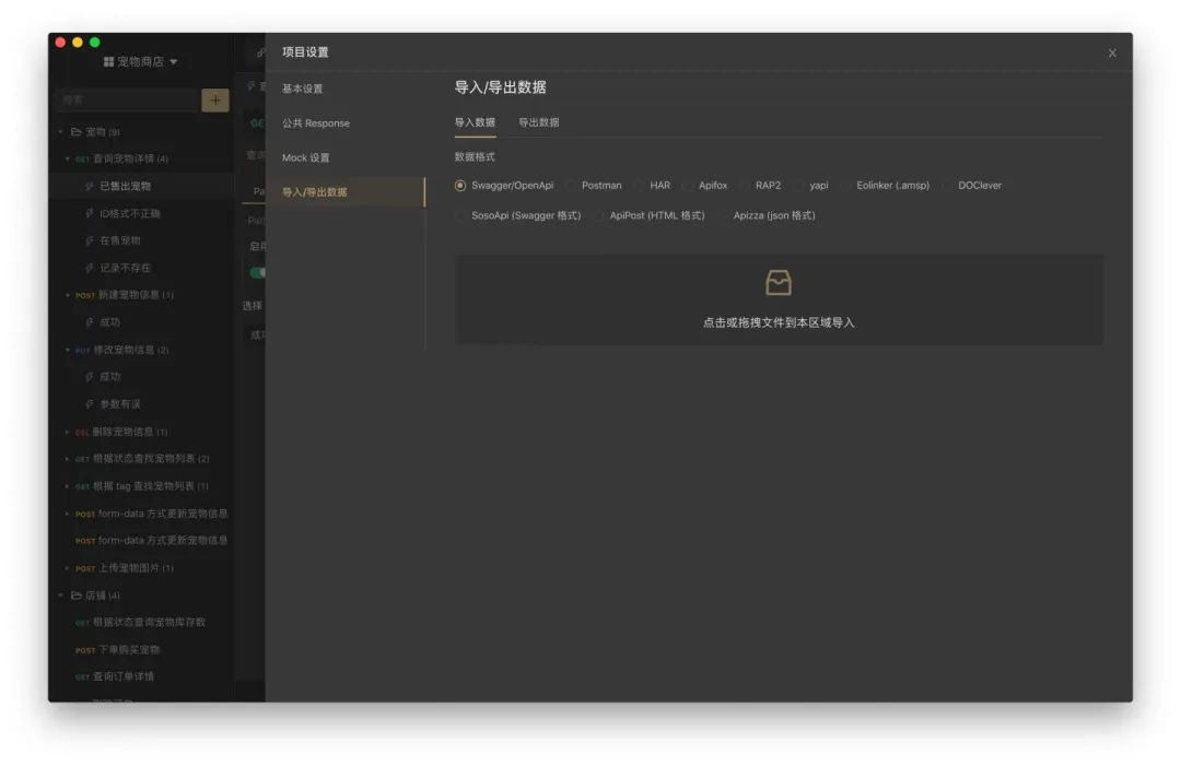 格式数据,所以你可以利用 OpenApi (Swagger) 丰富的生态工具完成各种接口相关的事情。支持导入 OpenApi格式(原Swagger)