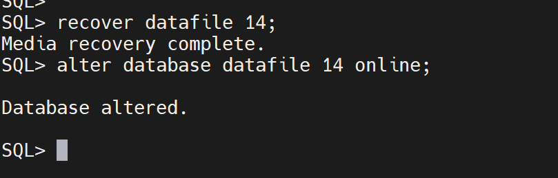 SQL> select FILE#,NAME,STATUS from v$datafile where FILE#=14;