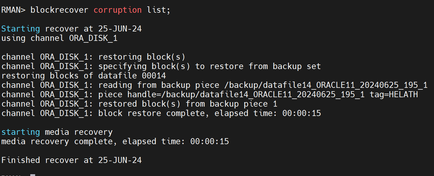 使用blockrecover corruption list来恢复,所有被校验的坏块都会被恢复