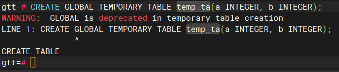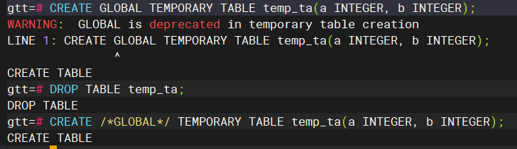 可以参考我的上一篇文章关于临时表的二三事,此处就不再重复进行描述了。虽然PostgreSQL存在全局临时表的语法,但是实际上并不具备该功能。