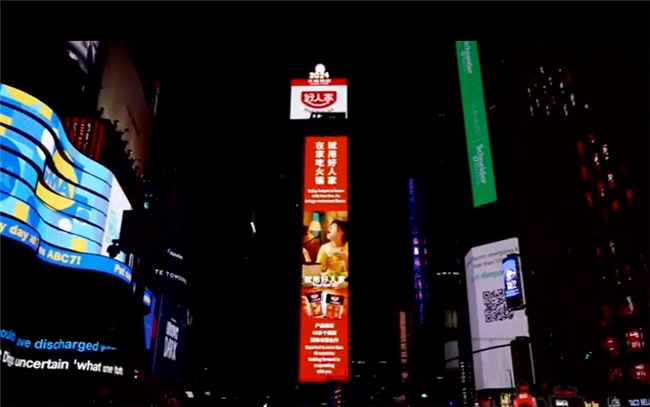 新年之际,天味食品“好人家”亮相纽约时代广场大屏,全球华人倒计时迎接新年的到来;