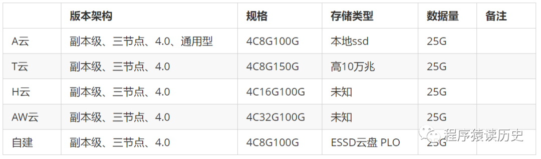 由于工作关系,笔者曾对国内外四家云厂商巨头的 MongoDB 产品做了性能测试,测试对象是托管的 MongoDB V4.0 三节点副本集架构。由于不同云厂商的产品规格并不统一,比如 MongoDB V4.0 副本集架构国内的A云、T云有4C8G的规格,国内的H云和国外A云(以下采用AW云)并没有该规格。因此,H云选择4C16G规格替代,AW云选择4C32G规格替代。另外,这次测试是2022年Q2做的,不代表云厂商产品的当前状态。综上情况,此次云厂商MongoDB性能测试结果,不具有生产实际参考,仅供参考。