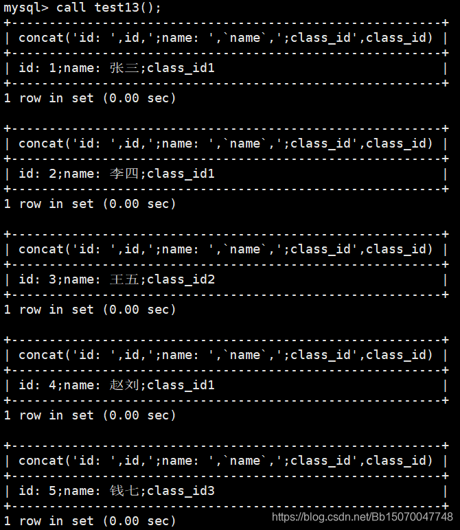 select concat('id: ',id,';name: ',`name`,';class_id',class_id);