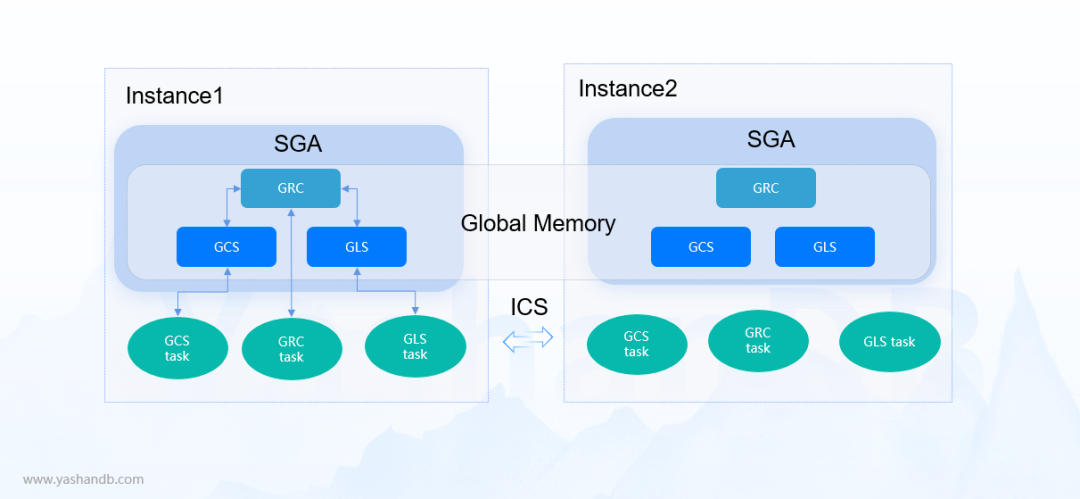 全局缓存服务(GCS,Global Cache Service),负责完成数据块在多个实例间的传输与失效,提供强一致的并发访问、修改能力。