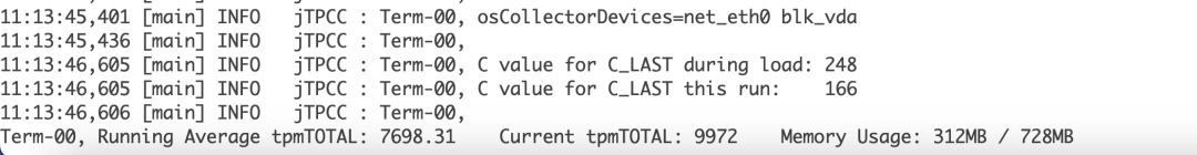 如下图,在使用 BenchmarkSQL(版本为 5.0)压测一段时间后,会出现卡住的现象,即 tpm TOTAL