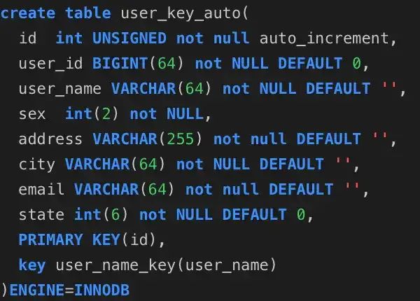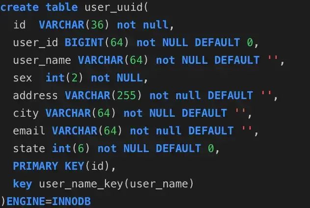 分别是user_auto_key,user_uuid,user_random_key,分别表示自动增长的主键,uuid作为主键,随机key作为主键,其它我们完全保持不变.