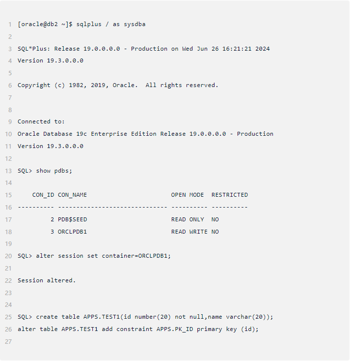 实验环境: oracle 19c