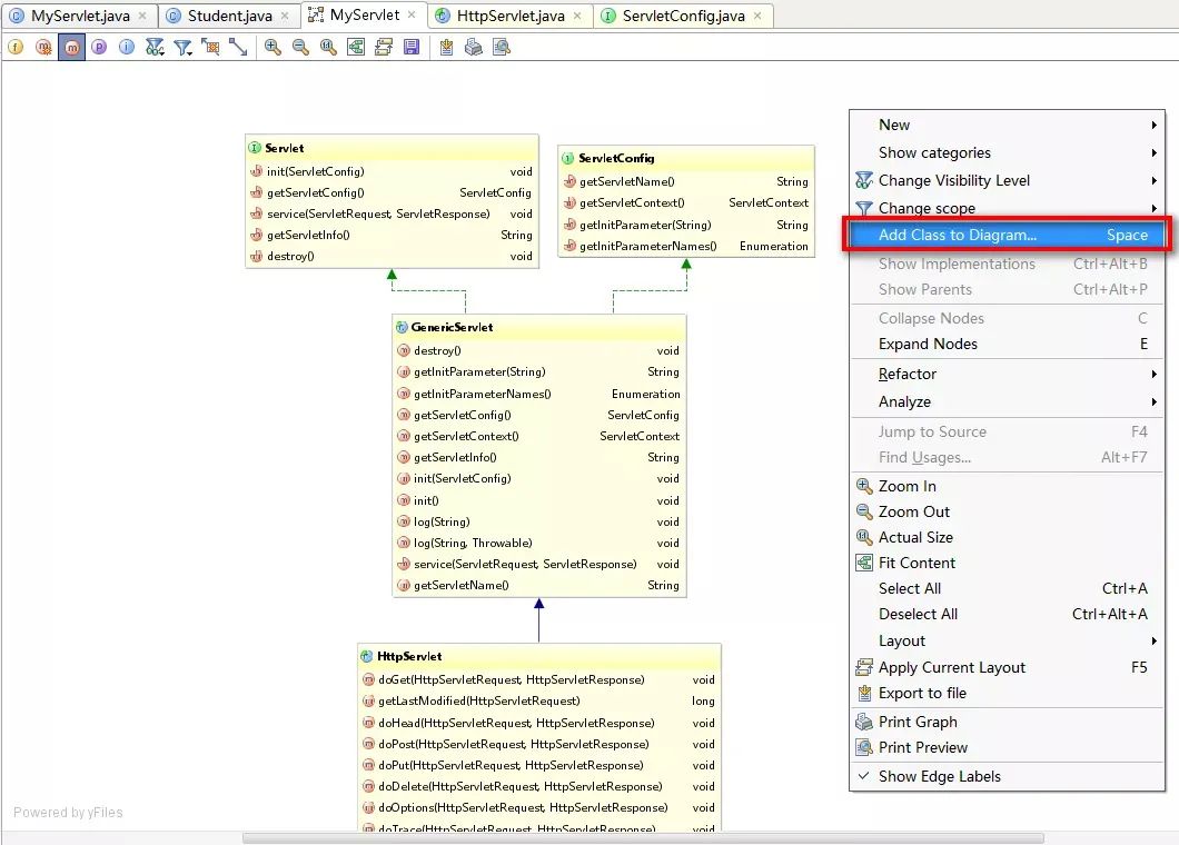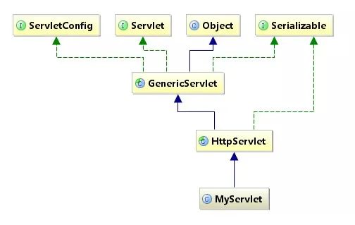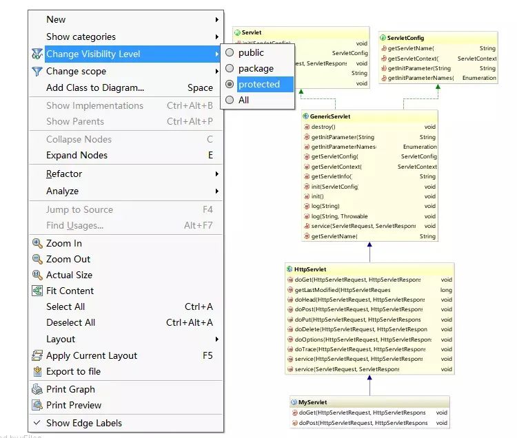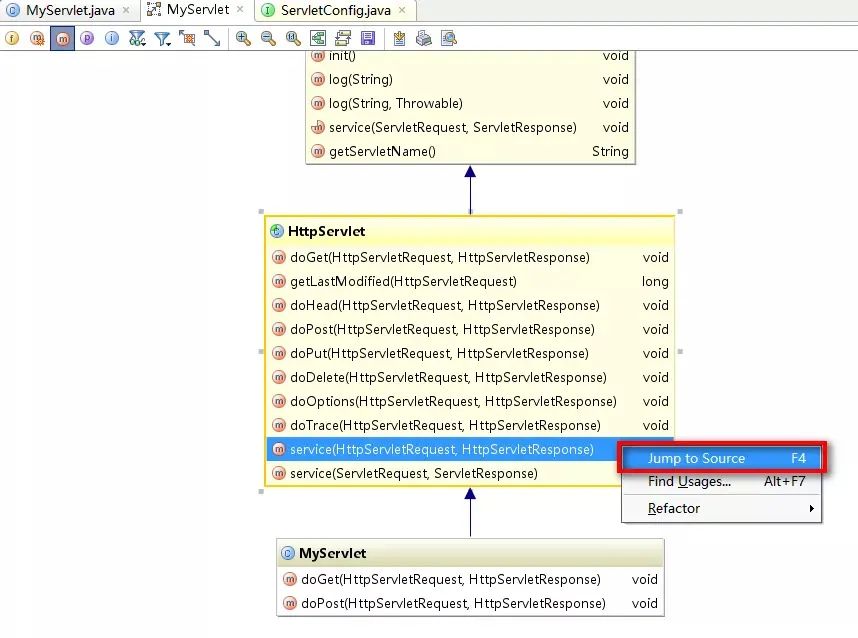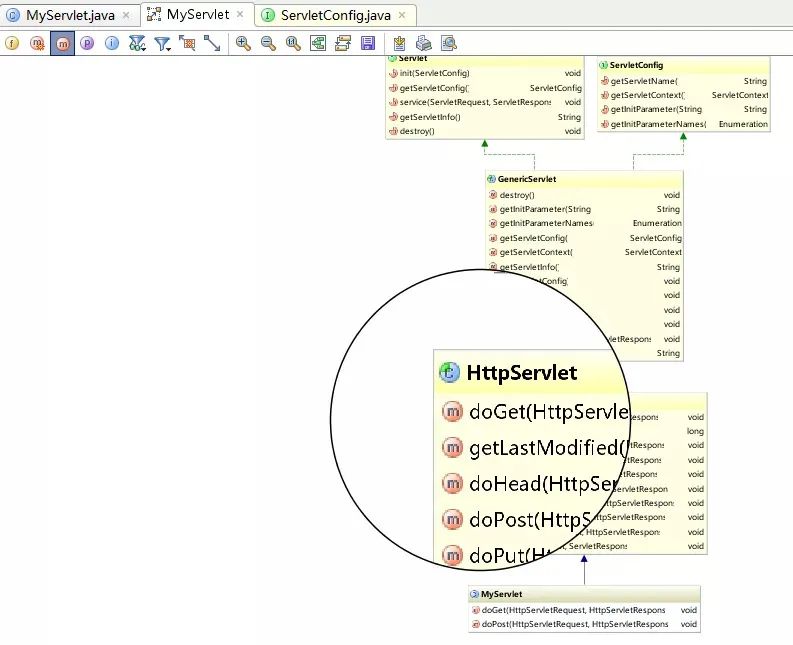 然后你就会得到如下图所示的继承关系图形,以自定义的Servlet为例: