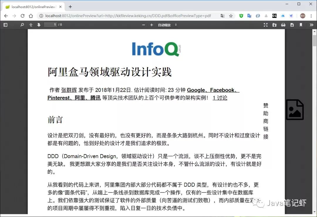 支持pdf文档预览,和word文档一样,有两种预览模式