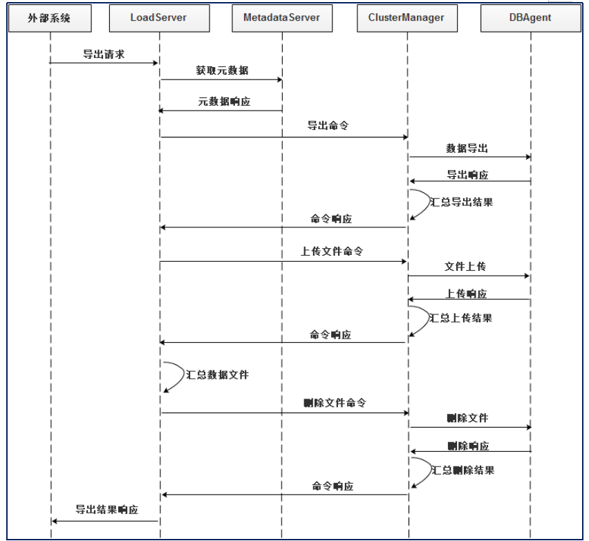 导出过程数据流如下:DB节点 --> DBAgent --> LOAD Server --> 外部系统