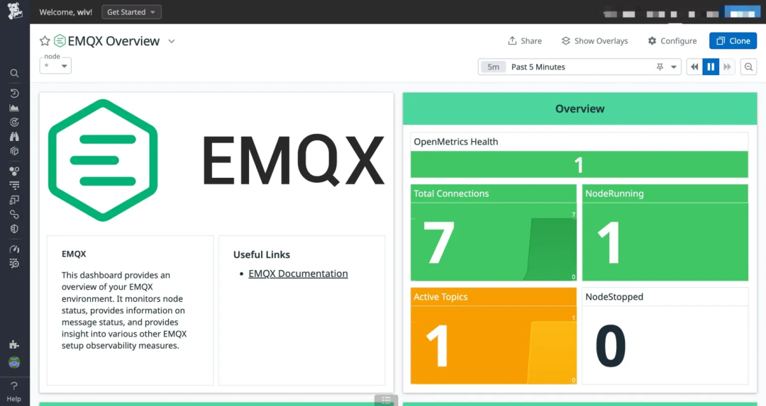 本文展示了如何将 EMQX 与 Datadog 无缝集成来实时监测 EMQX 的运行状态。通过 EMQX 完善的指标和 Datadog 的强大功能,用户可以时刻了解 EMQX 的运行状况,包括连接数、消息速率、节点状态等关键指标,以便及时发现潜在的问题并采取相应的措施,从而保证系统的稳定性和可靠性。期待本文能为使用 Datadog 监控 EMQX 的用户提供一些有用的指导和参考。