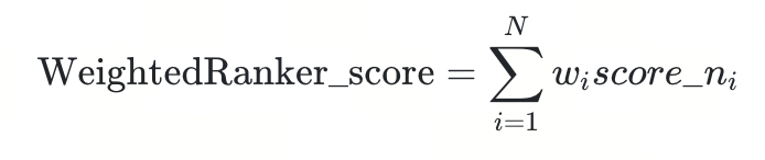 WeightedRanker 分数加权平均算法的核心思想是对多个召回路的输出结果的分数进行加权平均计算,以得到一个综合的结果,其中不同召回路的贡献可由预设的权重来决定。其基本步骤如下: