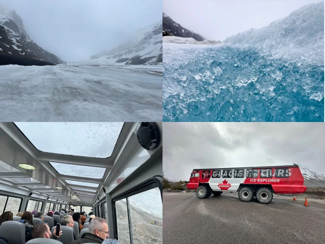 早上十点,赶到了今天的主要目的地之一 —— 哥伦比亚冰原。据说冰原特大号的冰川,这里的 Ice Dome 是著名的三洋分水岭,向北的阿萨巴斯卡河流入北冰洋,西边流入太平洋,东边流入大西洋。