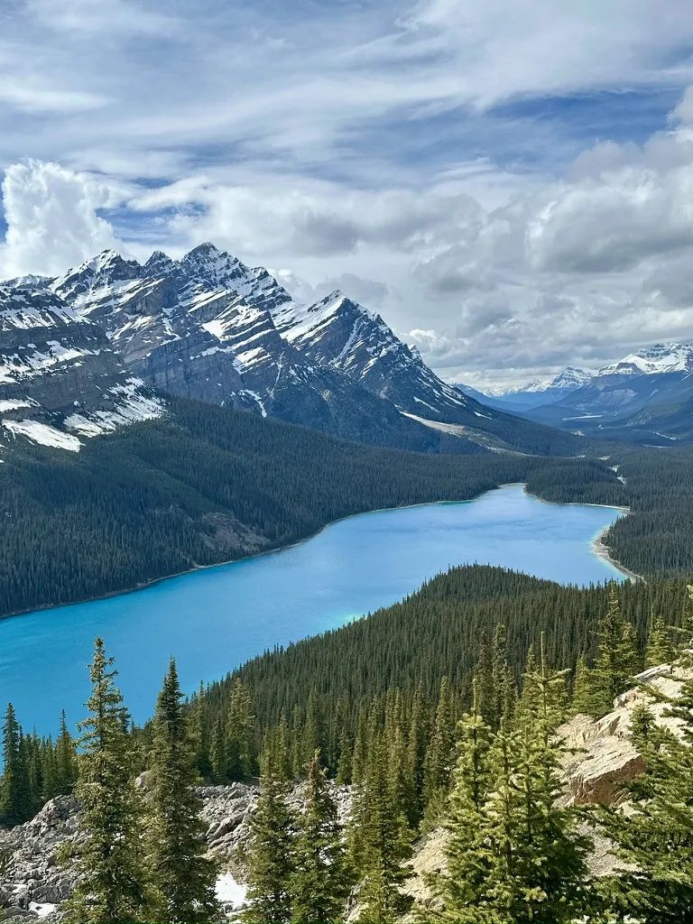 另一个湖,Peyto Lake 沛托湖 则要徒步走一公里山路,但确实不虚此行,湖的颜色非常惊艳。