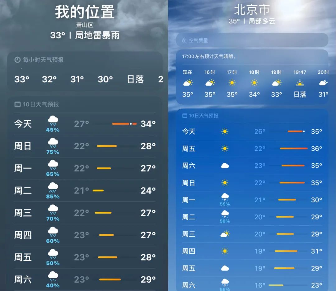 本周末杭州北京天气对比