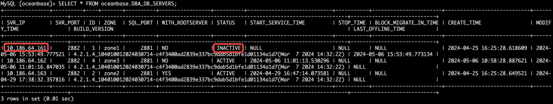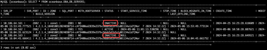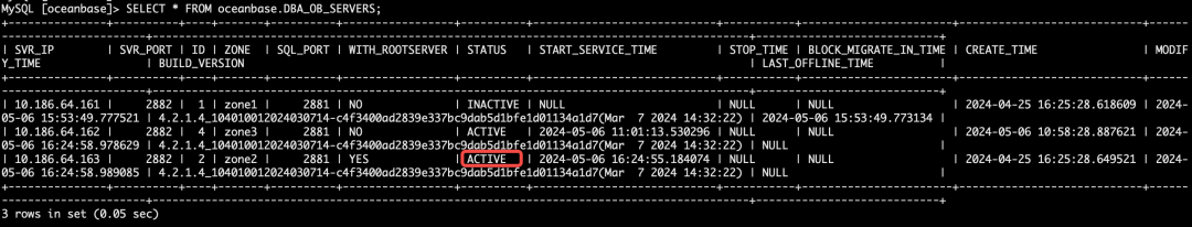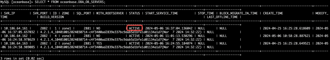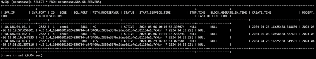 SELECT * FROM oceanbase.DBA_OB_SERVERS;