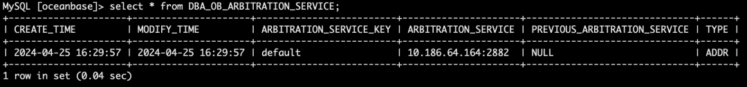 select * from DBA_OB_ARBITRATION_SERVICE;