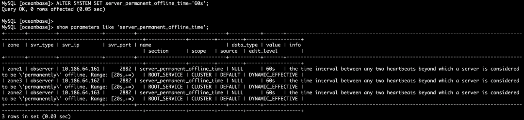 ALTER SYSTEM SET server_permanent_offline_time='60s';