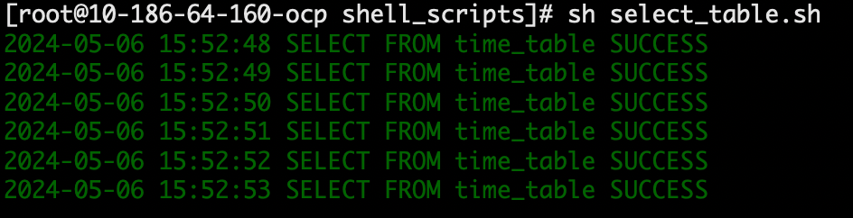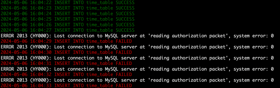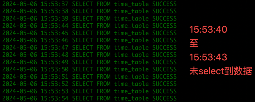 查询 kill 掉第 1 个 observer 时间点前后,业务表 time_table
