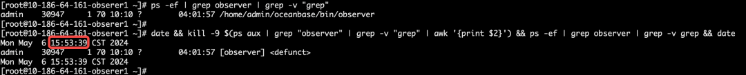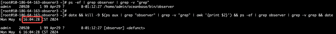 date && kill -9 $(ps aux | grep "observer" | grep -v "grep" | awk '{print $2}') && ps -ef | grep observer | grep -v grep && date