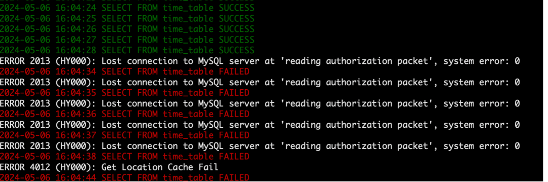 结论:租户切主期间短暂读写异常,后续恢复正常读写。