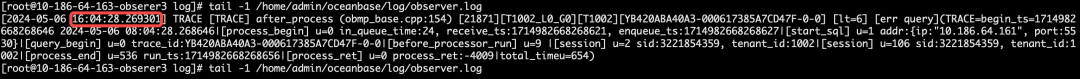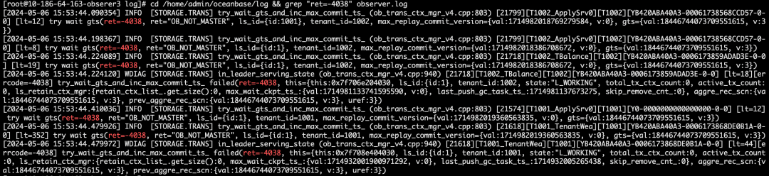 cd /home/admin/oceanbase/log && grep "ret=-4038" observer.log
