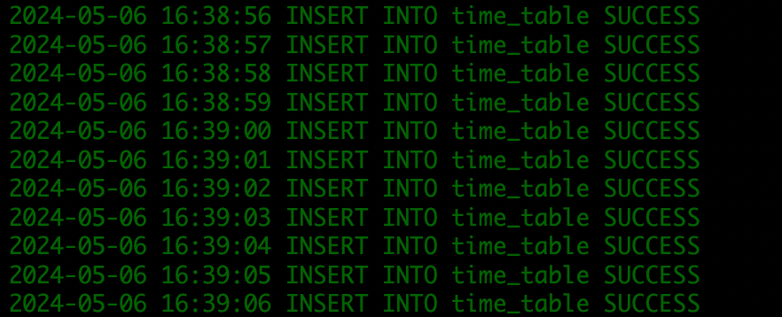 select * from evan.time_table where time >= '2024-05-06 16:04:25' order by time limit 20;