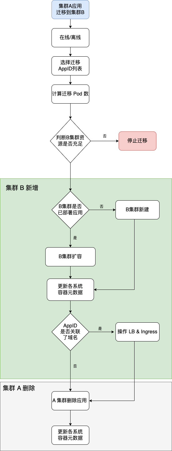 当 A 集群发生 集群层故障时, 且 B 集群 没有足够的资源下, 还要考虑降级方案, 比如各 AppID 迁移副本数减半,优先迁移核心服务等策略。