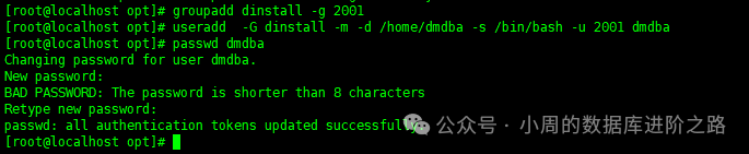 useradd -G dinstall -m -d /home/dmdba -s /bin/bash -u 2001 dmdba