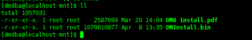 [dmdba@localhost mnt]$ cd /home/dmdba/dmdbms/bin