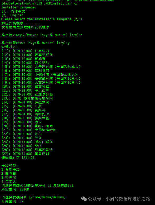 [dmdba@localhost mnt]$ ./DMInstall.bin -i