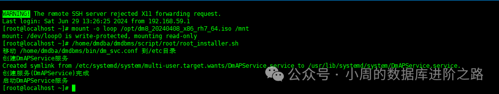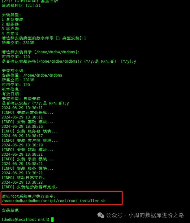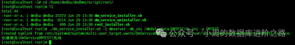 [root@localhost ~]# /home/dmdba/dmdbms/script/root/root_installer.sh