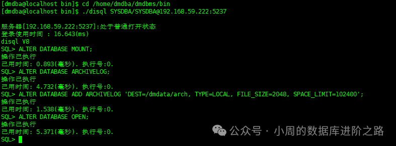 [dmdba@localhost log]$ mkdir -p /home/dmdba/dmdbms/log/logcommit