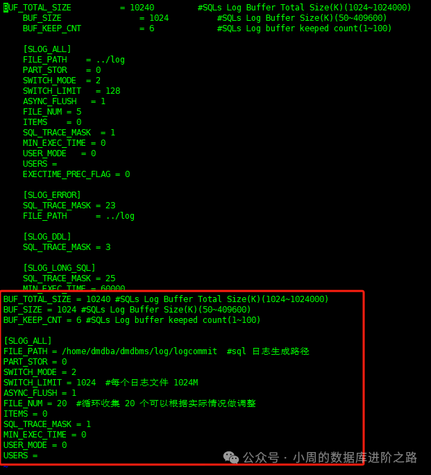 FILE_PATH = /home/dmdba/dmdbms/log/logcommit #sql 日志生成路径
